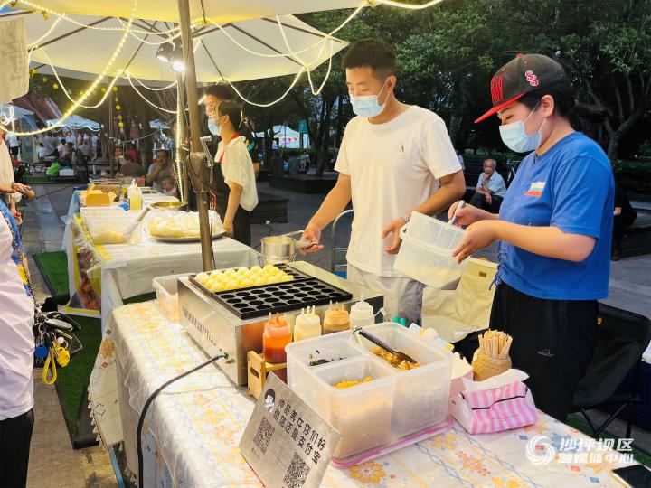 本次“桥尚夜市”集休闲、娱乐、美食、体验等于一体,涵盖近百种特色小吃、甜品、冷饮、手工、日化、游戏等内容,琳琅满目。让辖区居民体验到“吃中有游,游中有购,购中有娱,娱中有秀”的消费盛宴。活动现场有60个摊位,在阳伞、草坪、景观树的映衬下,吸引大量居民纷纷上前打卡拍照。在美食街区一侧,铁板虾滑、火爆鱿鱼、芝士烤肠、炭烧生蚝、章鱼小丸子等美味小吃应有尽有;网红厚切酸奶、现切鲜果、海南椰青、泰国椰奶、水果茶等美食摊位前人头攒动,居民在这里实现了美食自由。除了“吃”,夜市还在“赏”、“娱”上下足了功夫,设置了适合亲子玩的套公仔、打气球等体验类项目。桥尚夜市的摊主李利华表示夜市经济的进入门槛低,是增加摊主收入,方便群众生活的双向促进。
