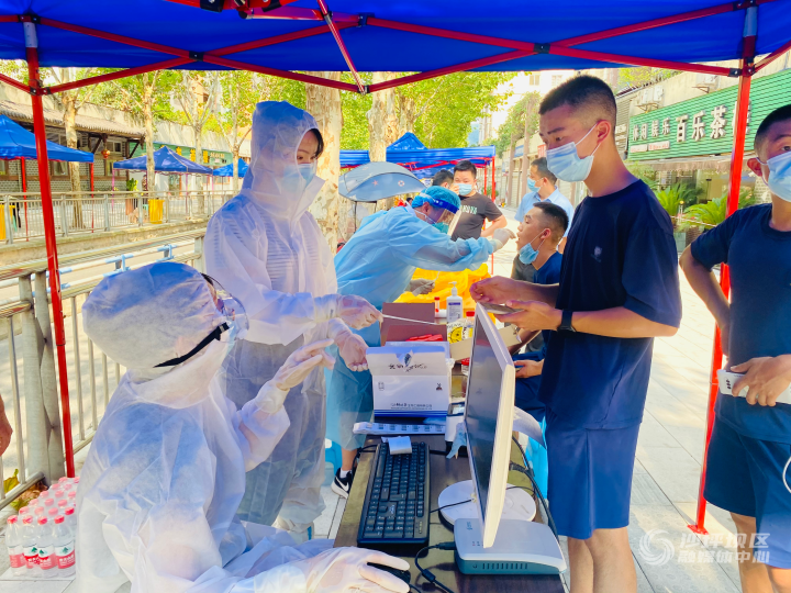 “请提前亮出渝康码,有序排队,莫慌莫慌”“天气炎热,我们点上都备了风管机,防暑药品、矿泉水这些都是备齐了的,大家有需要给我说。”8月4日一大早,天刚蒙蒙亮,在金科天宸7街区核酸检测现场,核酸检测现场人头攒动却井然有序,疫情防控红岩攻坚组20余名红岩志愿者,正协助医务人员做好秩序维持、体温测量、信息登记等服务工作。下午5点整,在其他16个采样点上,来自覃家岗、童家桥、磁器口、井口街道140名驰援队伍,以及区级各部门70余名下沉干部各就位,联网、调试系统、确认信息......正火速融入核酸检测大军中,坚守至12点才离开。