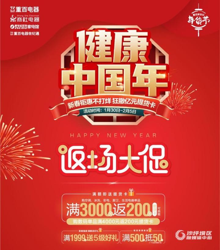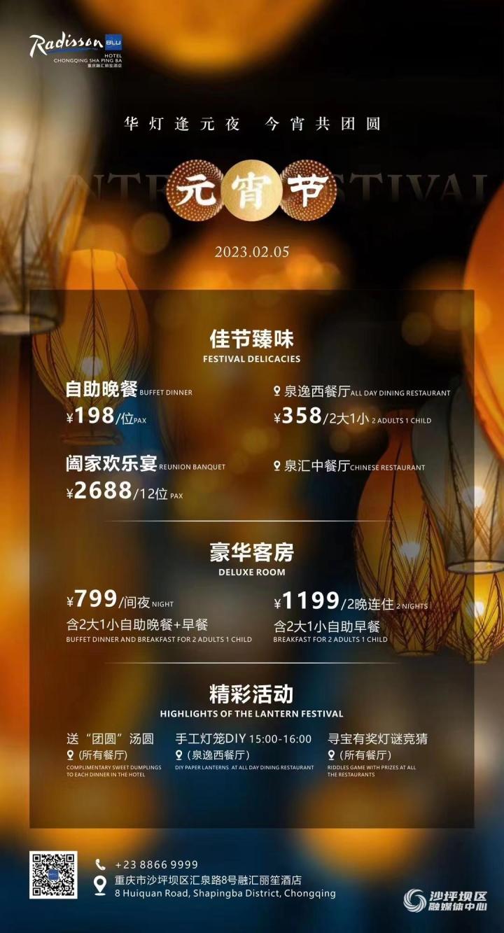 重百沙坪商场则推出“元宵悦团圆”活动,消费满额领取元宵好礼一份,并送出家居服饰券,还可在多点app领取88元“发发券”。“融汇温泉城围绕元宵节传统习俗,将在2月4日-5日举办国潮迎新民俗文化节、游园会、元宵灯会、非遗集市、民俗演艺,为广大市民献上一场盛大的沉浸式视觉盛宴。”沙坪坝融汇温泉城有关负责人表示。