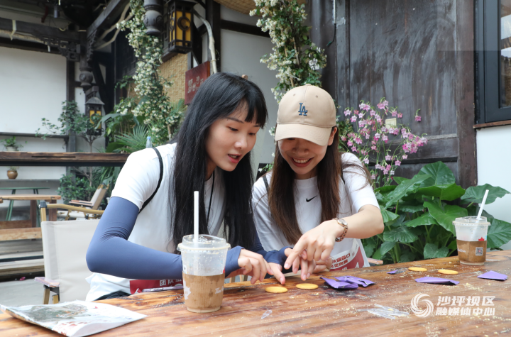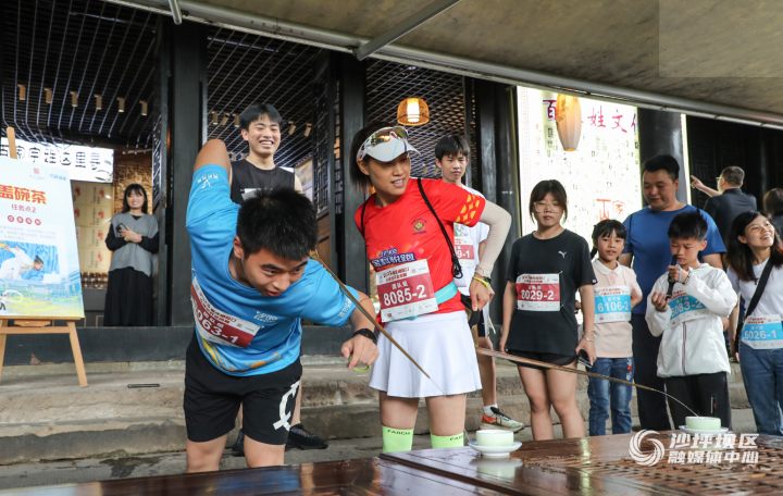 一起用脚步丈量磁器口,用双眼记录美景,发令枪响,大家离弦之箭一般冲出起点黄桷坪牌坊广场。本次比赛采用国际上流行的定向积分赛的方式,在规定比赛时间内,打卡点位越多、获得积分越多的队伍排名越靠前。比赛共设置投壶、盖碗茶、《重庆1949》角色打卡、跳跃青蛙、鱿鱼饼干5个游戏任务点,陈建平麻花沙磁巷店、artech hub艺术磁场、磁器长歌沉浸式体验馆、宝轮寺、钟家院、迎龙门、韩子栋陈列馆等14个打卡点,一个个大小景点如同遗世珍珠散落街巷间,由参赛选手自行规划线路串珠成链,在春风化雨中体悟巴渝文化、抗战文化、沙磁文化、红岩文化的精髓。内容涵盖丰富广泛,游戏形式生动活泼,展现古镇历史脉络,融团队性、健身性、趣味性、探索性于一体。
