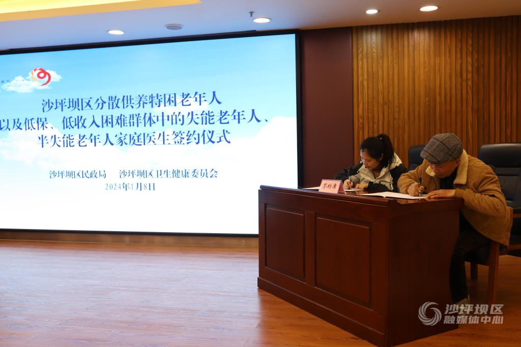 1月8日,沙坪坝区分散供养特困老年人以及低保、低收入困难群体中的失能老年人、半失能老年人家庭医生签约仪式在区中医院举行。