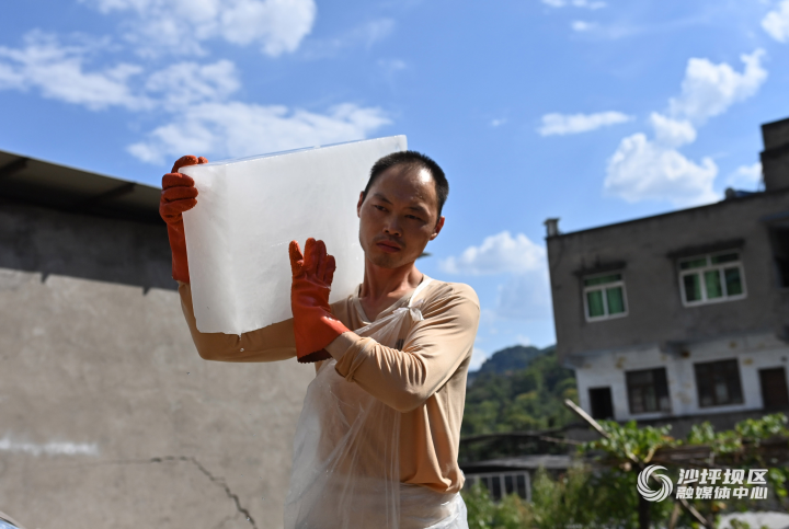 8月11日,在位于沙坪坝区覃家岗街道梨树湾村的一制冰厂内,工人们在制冰、运冰,一派忙碌的景象。连日来,重庆持续高温天气,海鲜市场、超市生鲜商品降温保鲜所需冰块需求量急剧上升,冰块也到了一年中需求最旺的时候。室外40℃的高温,室内零下的低温,寒温差达到近50℃,制冰工人每天往返于“冰火两重天”托运冰块,保障每日生产1200块左右大型冰块,满足供应需要。