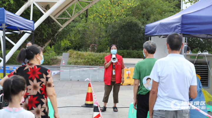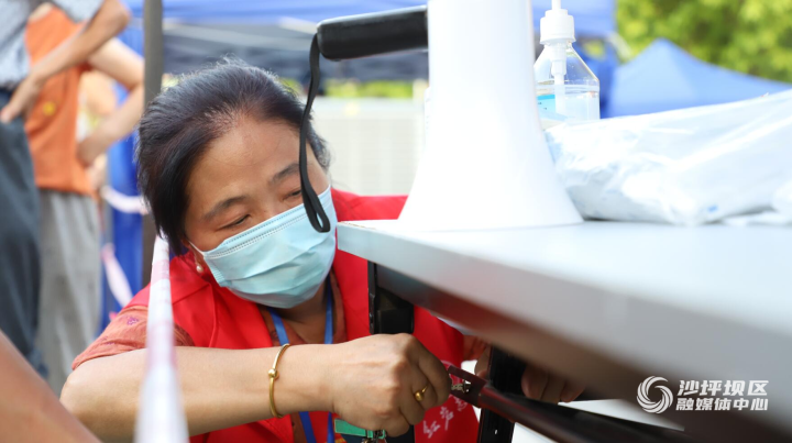 “大姐,你下次来做核酸直接给我打个电话,我来接你下来。”在回龙坝镇聚龙城广场,正引导居民有序排队的何丽娟将小喇叭往肩上一挂,小跑着赶去推坐轮椅的居民婆婆前往核酸检测点。作为该核酸检测点的红岩志愿者,这些天,何丽娟总是喜欢“搭把手”,主动多做一些,帮居民多想一点,这让她成了核酸检测点的“暖心红马甲”。