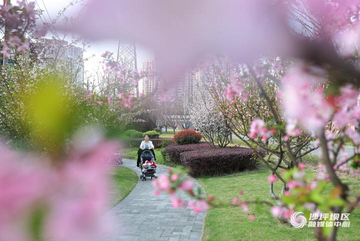 3月11日,沙坪坝区陈家桥街道的虎电滨河公园,海棠花盛开,吸引周边居民在此赏花休闲。当下,春花盛开,景色宜人,人们在公园踏青出游,享受春日美好时光。