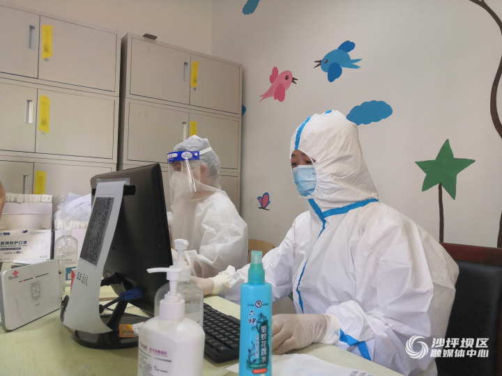 顶着40℃的高温,身穿防护服,坐在椅子上认真录入居民信息的这一位,就是覃家岗街道凤天路社区的工作人员向阳。在区域核酸检测工作中,她化身为信息录入员一刻不停地忙碌着,而在此之前,向阳还在住院。