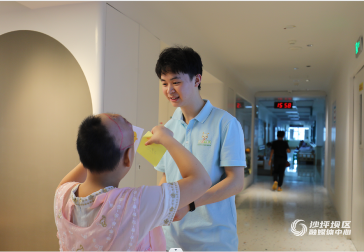 8月初,10岁的小石头终于集齐了勇士徽章。在出院前,他很想见见卷毛哥哥,因为在“星球”里的这段时间,卷毛哥哥带给了他很多快乐。卷毛哥哥名叫杨茂,是一名医务社会工作专业实习生。今年5月,他来到“星球”,定期陪孩子们开展游戏,和孩子建立了深厚的感情。