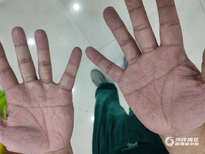 区中西医结合医院检验科科长、党员冯洁之前在江津区支援核酸检测工作,我区大规模核酸检测开始后,她被紧急调到陈家桥方舱检测点。冯洁和战友们每天工作12小时以上,拧标本采集管瓶盖3000多次,加完一批样本后,手脱皮、颈椎和手臂都酸疼难忍。为避免上厕所耽误时间,一上午她都不喝一口水。冯洁表示,“天太热了,头发里都是汗水,闷得透不过气,只要能快速出具检测结果,指导各部门精准采取防控措施,我觉得付出的一切都值得。”
