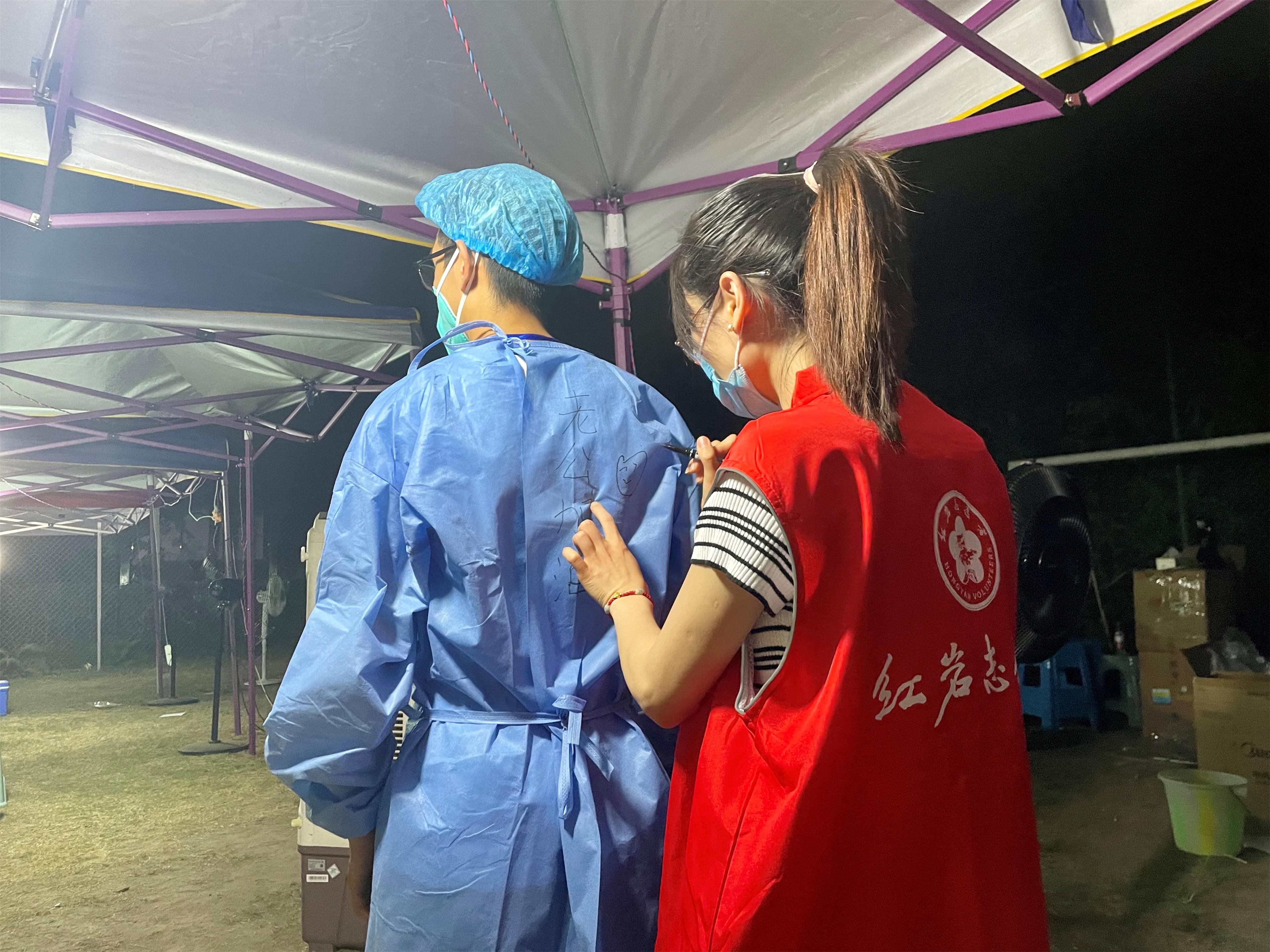 于是,夫妻俩不约而同报名参加战疫志愿者。8月15日,已是胡同第3天当志愿者。他穿上防护服,负责本小区核酸采样点信息录入,在高温下工作4-5个小时,汗水早已湿透衣服,但他依然没有一句怨言。