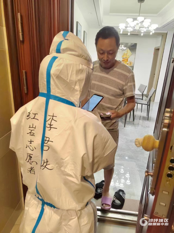 8月14日是李君轶举办婚礼的日子,可就在婚礼前三天,8月11日,金科天宸八街区被纳入封控区域,所有居民按防控要求“足不出户”。作为一名入党积极分子,她第一时间响应党组织号召,就地转化为金科天宸八街区的红岩志愿者,参与入户信息登记、物资转运等志愿服务。