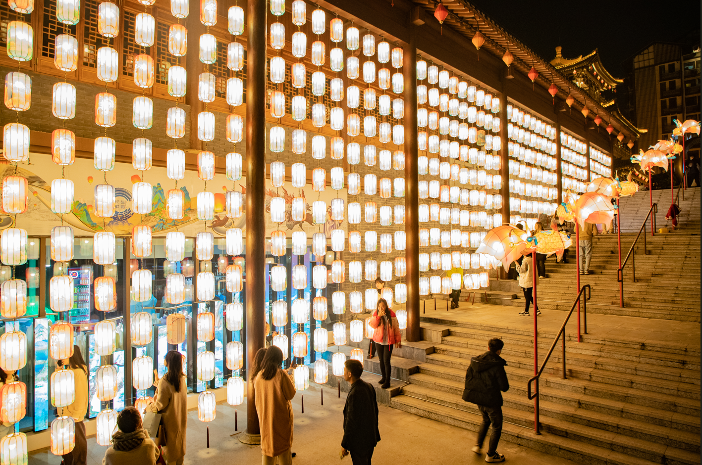 1月15日,磁器口古镇迎春灯饰全部装饰完成,正式点亮。即日起至2月29日,游客每天晚间6时至10时到磁器口古镇,都可以领略古镇“入夜来万盏明灯”的惊艳。