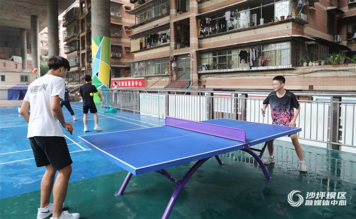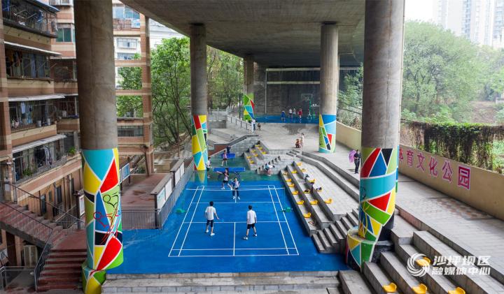 近日,沙坪坝区土湾街道龙泉路立交桥下空间被改造为社区文化体育公园,成为居民休闲运动的好去处。
