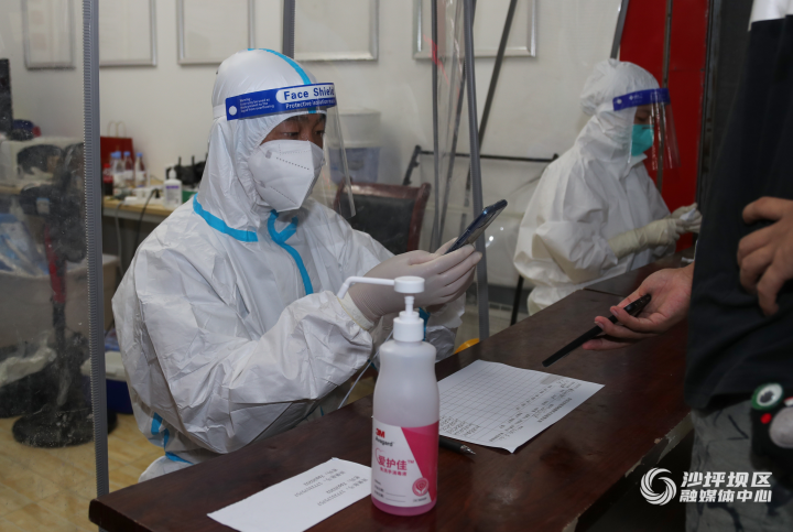 8月20日晚,记者在山洞街道的核酸采样点见到了谢阳波的丈夫高继龙。扫码、登记、核对身份信息、发放核酸采样棉签,整套工作流程,高继龙一气呵成,效率极高。高继龙告诉记者,自己今年刚刚退伍,刚脱下迷彩军装后,又换上了防疫“战袍”。自8月4日疫情发生以来,高继龙已经跟随妻子多次前往沙坪坝西部支援兄弟镇街,8月18日下午,刚和妻子结束对渝碚路街道的支援任务,夫妻俩还没来得及回家吃上一顿热饭,立即转身投入到山洞街道的疫情防控工作中。高继龙自信地说,自己已经是一名经验丰富的“老战士”了。