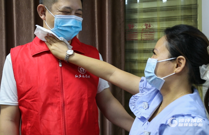“我爱人平时就是那种很热心的人,我们街道有重大活动时,他经常都会来帮忙,每次都是主动来承担工作。”蒲俊屹告诉记者,丈夫平时在外区经商,这次沙区东部城区实施临时管控,丈夫二话不说报名成为了志愿者。社区工作人员中女同志较多,丈夫杨先亮除了维护现场维序,还承担了大量的体力工作,有时到了深夜,现场还能看到他忙碌的身影,在心疼丈夫的同时,自己内心多了一份坚定。