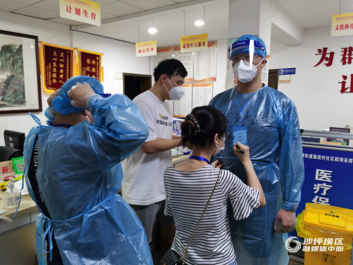 鹿扬是沙坪坝区财政局信息科的负责人,也是该局10小分队的队长,他负责在双碑街道勤居村社区的两个点位统筹分工,协助社区维持秩序。面对每日连晴高温的天气,穿着蓝色防护服的他有序引导居民群众依次做核酸检测,在户外一站就是数个小时,中途没有轮换。8月20日晚11点,在完成居民现场核酸检测后,鹿扬又临时接到“敲门行动”任务,虽然已经感觉体力不支、身疲力竭,但是他仍然带领队员来到一栋老旧居民区,开始挨家挨户敲门,引导居民配合核酸检测。这栋居民楼没有电梯,鹿扬一行人只能一步步爬上楼。作为领队的鹿扬,在爬楼过程中旧疾复发,右腿已经开始肿胀,但是他没有吭声,继续咬牙坚持,直到完成最后一户居民的通知任务。“这点小伤不算什么,挺一挺就会过去的,但是核酸检测的任务等不得,必须尽快完成。”鹿扬说。