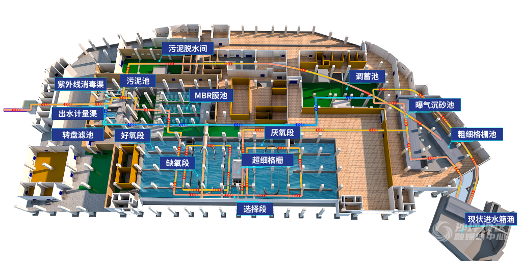 伍家河沟水质净化站不仅在用地问题上进创新实行了合建模式,还在水质净化工艺上进行了大胆尝试。首创了两种水质净化工艺并行运行的方式,这种先进的处理策略使得该水质净化站能够在不同季节中无缝切换,确保全年无休的高效运转。