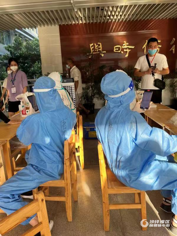 8月25日,在新桥街道张家湾社区上桥中学核酸检测点位上,有两位“特殊”的志愿者正在紧张有序地为居民录入核酸检测信息。这两位志愿者是居住在张家湾社区的一对母女,她们是高滩岩小学的教师杨柳和她12岁的女儿唐博雅。