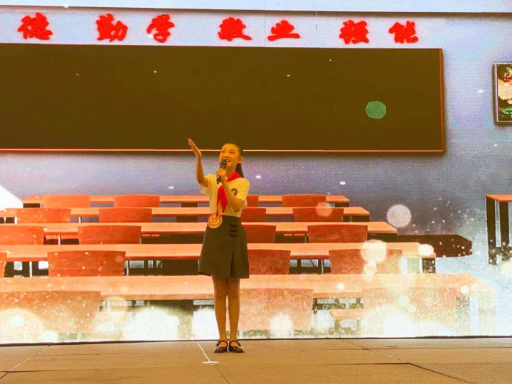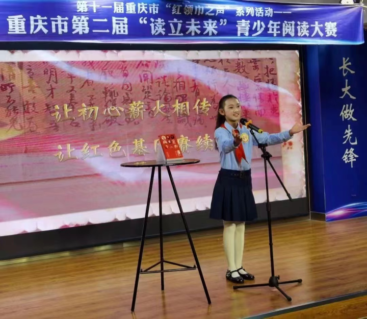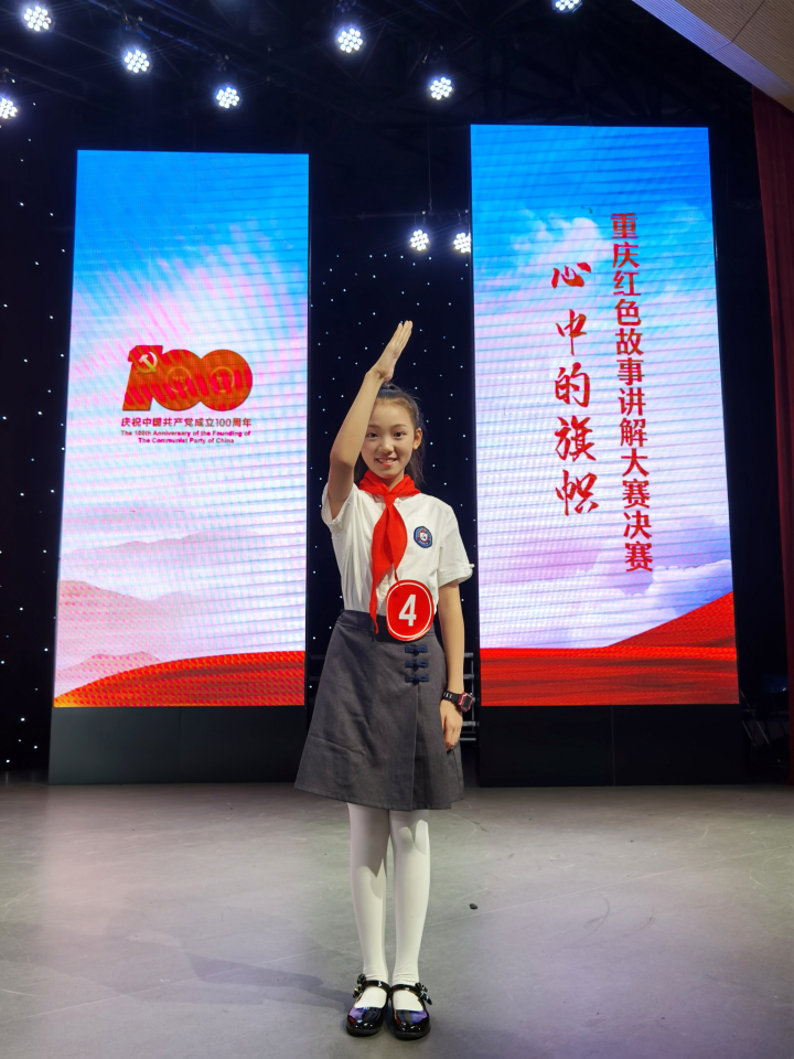 而今,“红领巾党史宣讲团”成员已经成为杨镏嫣最宝贵的身份。她愿意在繁忙的学习中挤出时间,向更多人宣扬她所看到的、体会的红岩精神,让更多人明白红岩精神的真正含义。截止目前,她已累积宣讲红色故事30场次,宣讲作品《血色芳华》《小萝卜头》《谁是最可爱的人》等红色故事相继在央视影音、“中华魂”、沙坪坝区中小学云端思政课堂等平台上演。
