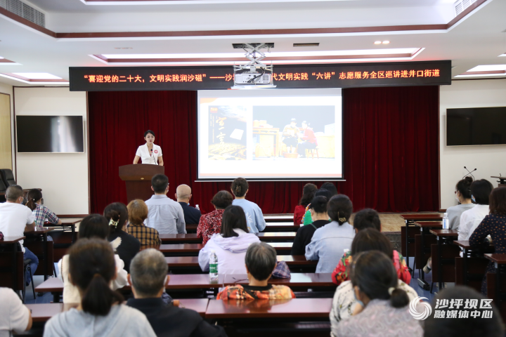 9月23日,“喜迎党的二十大,文明实践润沙磁”——沙坪坝区新时代文明实践“六讲”志愿服务全区巡回宣讲走进井口街道。