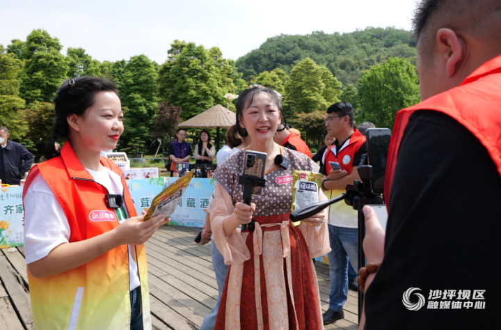 “怪味胡豆,颜色鲜、味道美,让你看着流口水,材料好、配料全……”,上午9点30分,记者在现场看到,“抖音达人”明曦等正在用抖音、京东、拼多多等平台宣传推介沙坪坝区农特产品,明曦表示,今天走进中梁镇,明显感受到这里的乡村与前两年大不相同,今天受区妇联邀请,通过直播间,助农销售,为乡村振兴助力,也是一件非常有意义的事情。