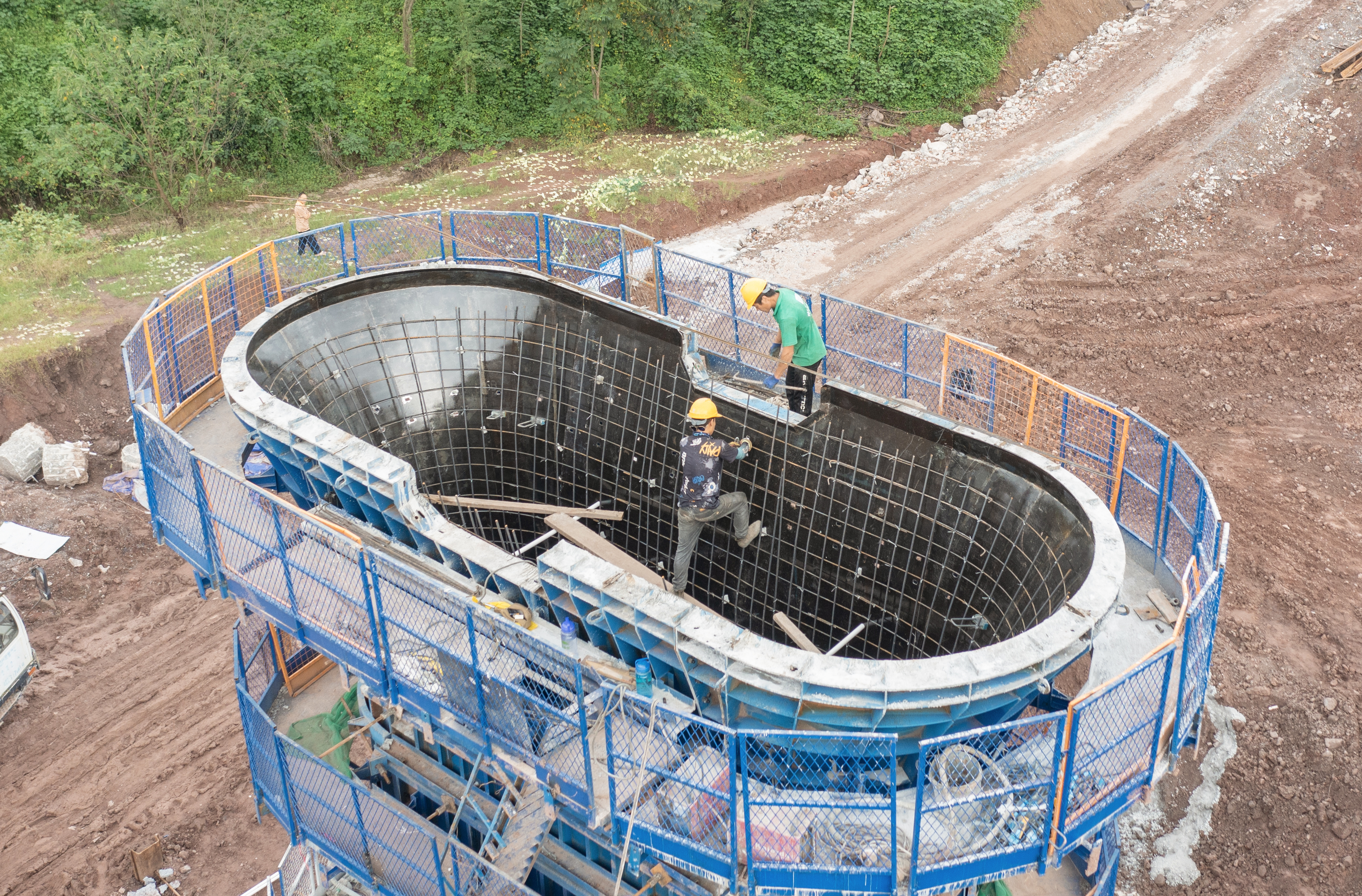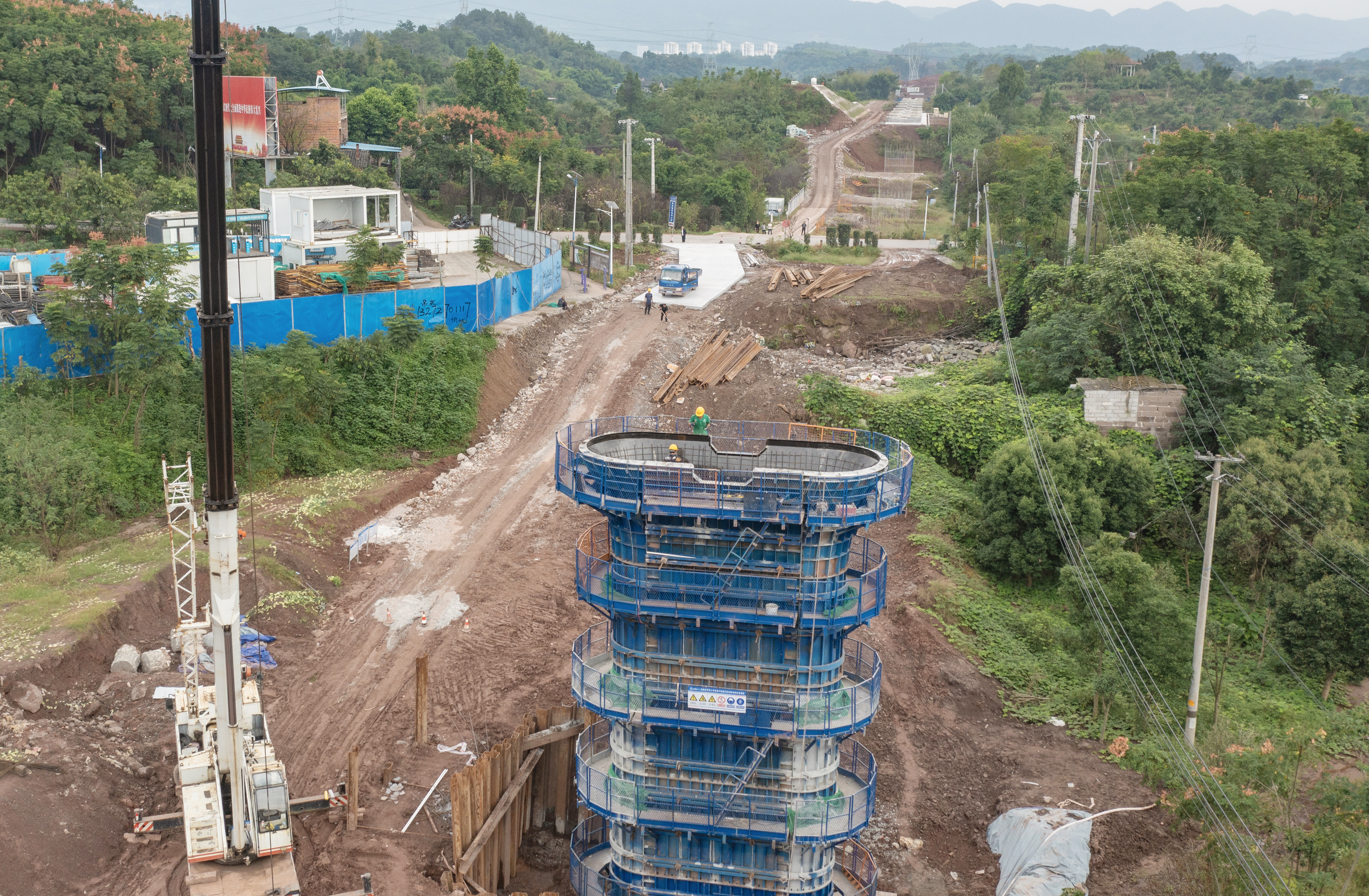 10月3日,正值中秋国庆长假,位于沙坪坝区凤凰镇的黄家嘴双线特大桥建设现场一片繁忙。记者在现场看到,工人们放弃假期休息,抓紧进行桥墩混凝土浇筑作业,全力保障项目进度。