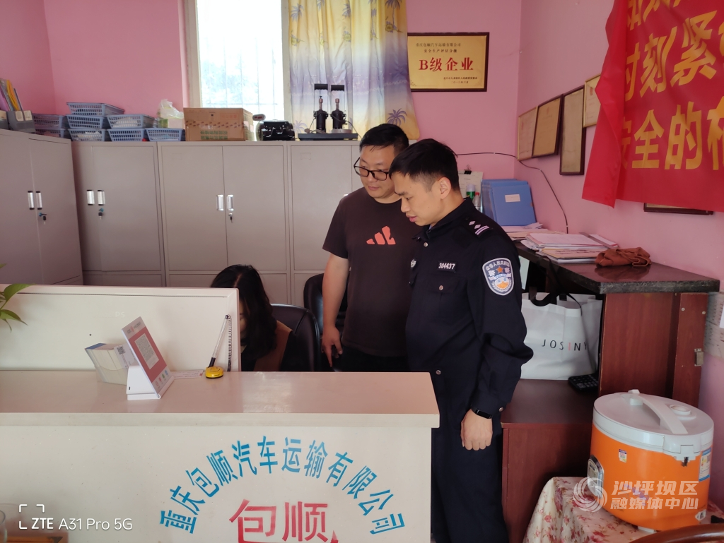 沙坪坝车管所民警对渝运四分公司、西部新城分公司、重庆西站及金遥危化品运输公司等单位的安全管理制度、 “84220”强制休息制度、“三不进站、六不出站”制度落实情况,以及车辆安全性能检测、驾驶人安全教育学习和资质审核等安全管理工作落实情况进行了逐一检查。